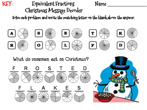 Christmas Math Worksheets Christmas fractions worksheets Two simple fraction skills are reviewed in these Christmas math worksheets to give students something fairly easy on the road to Christmas vacation. Open the Present Equivalent Fractions Shake the Present Simplified Fractions Christmas Arithmetic Ebenezer Scrooge's Missing Digits Worksheets